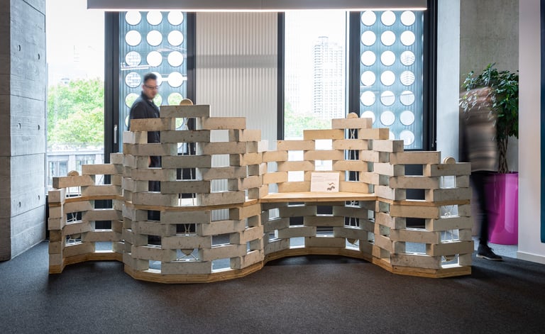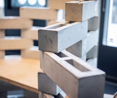 This cuts the embodied carbon by over 95% versus traditional concrete blocks.