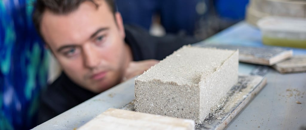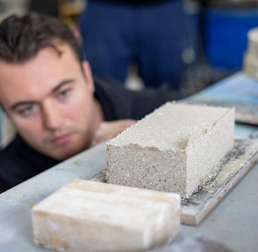 The team collaborated with structural engineers AKT II and materials specialists Local Works Studio experimented with different aggregate and additive combinations to improve performance and circularity. However, the brick’s binding agent, magnesium carbonate, remains ‘the star of the show’ and what makes it a viable low carbon solution for the construction industry. Over the coming months, the prototypes will be thoroughly tested to verify their performance against building standards.
