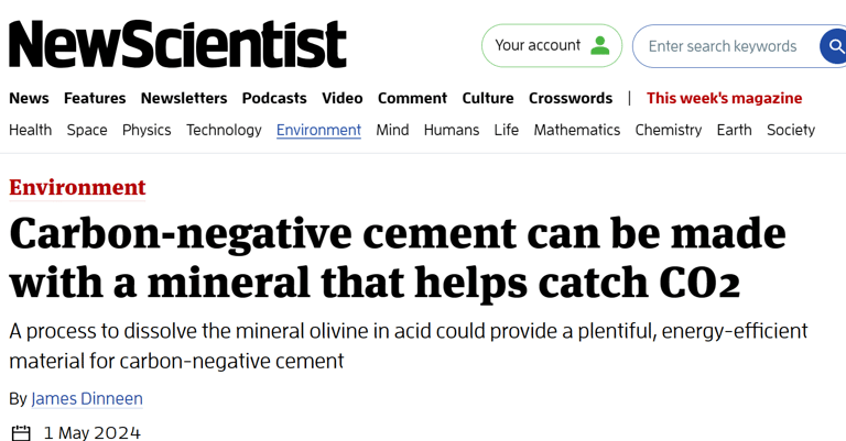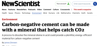 Seratech interviewed by New Scientist about carbon-negative cement made with olivine