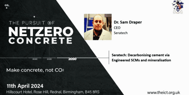 Last month, the Institute of Concrete Technology held its 52nd annual convention in a room filled with over 100 delegates in the construction industry. Sam delivered a talk on decarbonising cement via engineered SCMs and carbon mineralisation. One observation that came from an audience member "was that there appear to be no 'smoke and mirrors' in Seratech's technology". The Institute's mission is to promote concrete technology as a recognized engineering discipline and to advance the professional status of practicing concrete technologists worldwide. This ICT Convention was different from previous events as it underwrote the ICT's ongoing commitment to the pursuit of Net Zero Carbon Concrete.