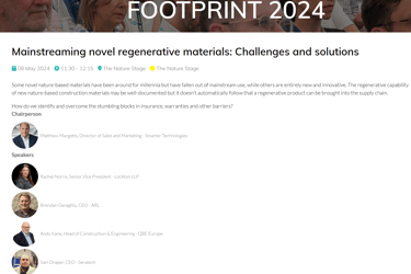 Sam Draper, took to the stage at FOOTPRINT+, widely touted as the world's most advanced international conference for the decarbonisation of the built environment, where he contributed to a discussion about insurance, warranties and the struggles that new construction materials may face when entering the supply chain. He spoke alongside, Rachel Norris, Senior Vice President at Lockton LLP. According to Sam, the general consensus was that "while there is increasing willingness to ensure new building materials on the part of insurers, the underwriters who evaluate and analyse the risks involved, are often responsible for holding back progress".
